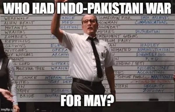 Categories Things That Are Really Bad Tags "We're All Gonna Die", Betting Board - Who Had?, India, Pakistan