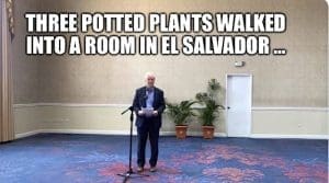 ‘Didja’ Hear The One About Three Potted Plants Walking Into A Room In El Salvador?