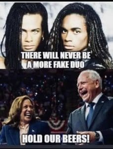 Categories 'Kackling' Kamala Derangement Syndrome Tags 'Tampon Tim' Walz, Milli Vanilli
