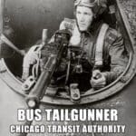 Yet, he’s advertising for Chicago Transit Authority Bus tailgunners