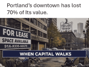 Google–Downtown Portland, Oregon, has experienced a significant decline in commercial real estate value, with the top 20 largest office buildings losing nearly 70% of their market value since 2019. This represents a drop in combined value of more than $2 billion.