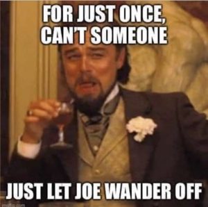 Let’s Put The ‘Cheap Fake’ Wandering Joe Meme To The Test June 23, 2024 by rainman Just let Ol’ Joe get through an event on his own recognizance. No handlers. If he doesn’t end up in Iowa, or chasing down a little kid… well, then, we might have been looking at ‘Cheap Fakes’. Otherwise, squirrels win.