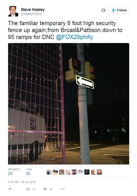 Here’s what The American Mirror says, “DNC erects four-mile eight-foot tall fence around Philly convention site“.