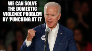 Smokin’ Joe Biden says we’ve got to “keep punching at domestic violence… ” Whoa!! And if that’s not enough, we have to “keep punching at it, and punching at it, and punching at it.”