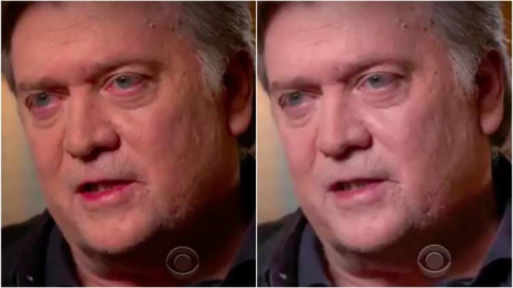 60 Minutes & CBS want you to think Steve Bannon is a red eyed monster.  It seems like 60 minutes would like you to listen less and look more at Steve Bannon. By subtly tweaking the color of the video, they make him look like a bleary-eyed drunk