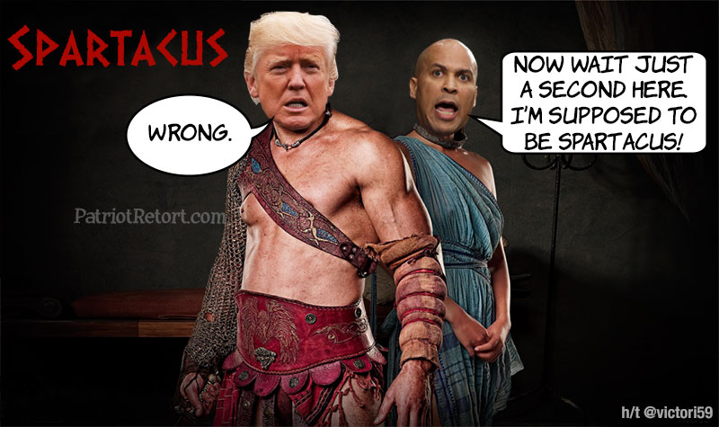 Cory’s been reading his own press reports, the one’s coming from his ‘closet headquarters’ for the 2020 Demagogic Presidential campaign. Right now, Mr. Senator, you are “all bald and no bite”, with dramaturgy befitting a Middle School play production.
