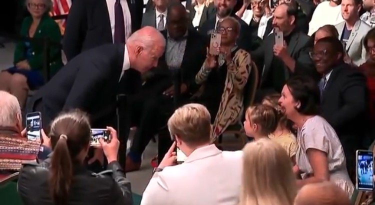 National File–Though the majority of the conversation is unintelligible, Biden can be heard telling one of the girls “Mommy owes you some ice cream,” eliciting raucous laughter from the crowd. The President then turns and marches back up to the podium, where he announces, “I just had to make sure the two girls got ice cream when this is over.”