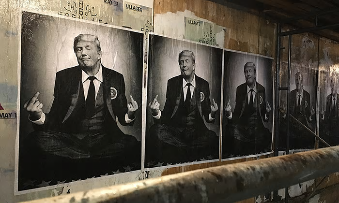 In the Trump era, the right, however, has its own guerrilla artist: Sabo, a former US marine who works from an apartment-cum-studio in Los Angeles beneath a sign that says “Fuck Tibet”. Another says “Fuck peace”.